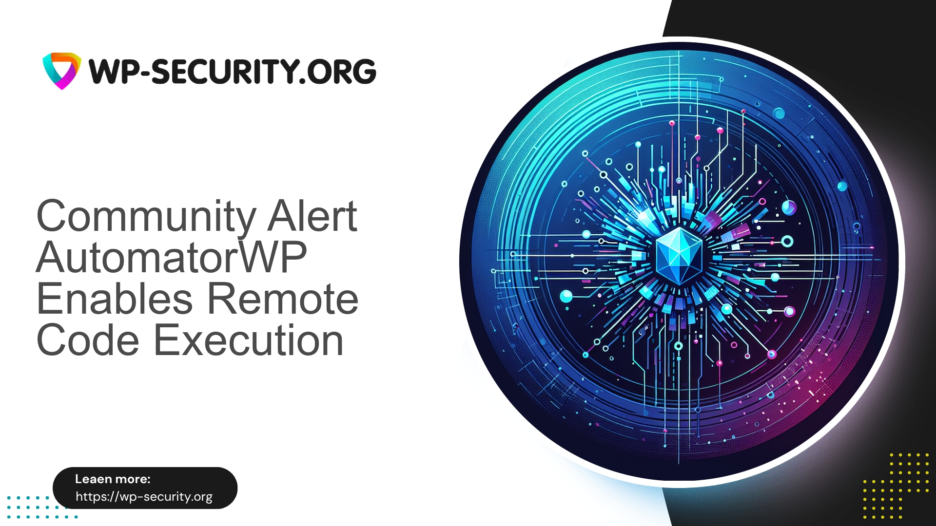 We report a high-severity vulnerability in the AutomatorWP WordPress plugin (CVE-2025-9539). Versions up to and including 5.3.6 are affected. The vulnerability is a missing authorization check that allows authenticated users with the Subscriber role (or higher) to create malicious automations, which can lead to remote code execution (RCE) when a crafted automation is executed.